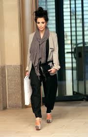 This style is suited best with high heels or boots, however normal sandals look great as well, try to avoid extremely baggy tops as it will clash with the baggy look of the pants.